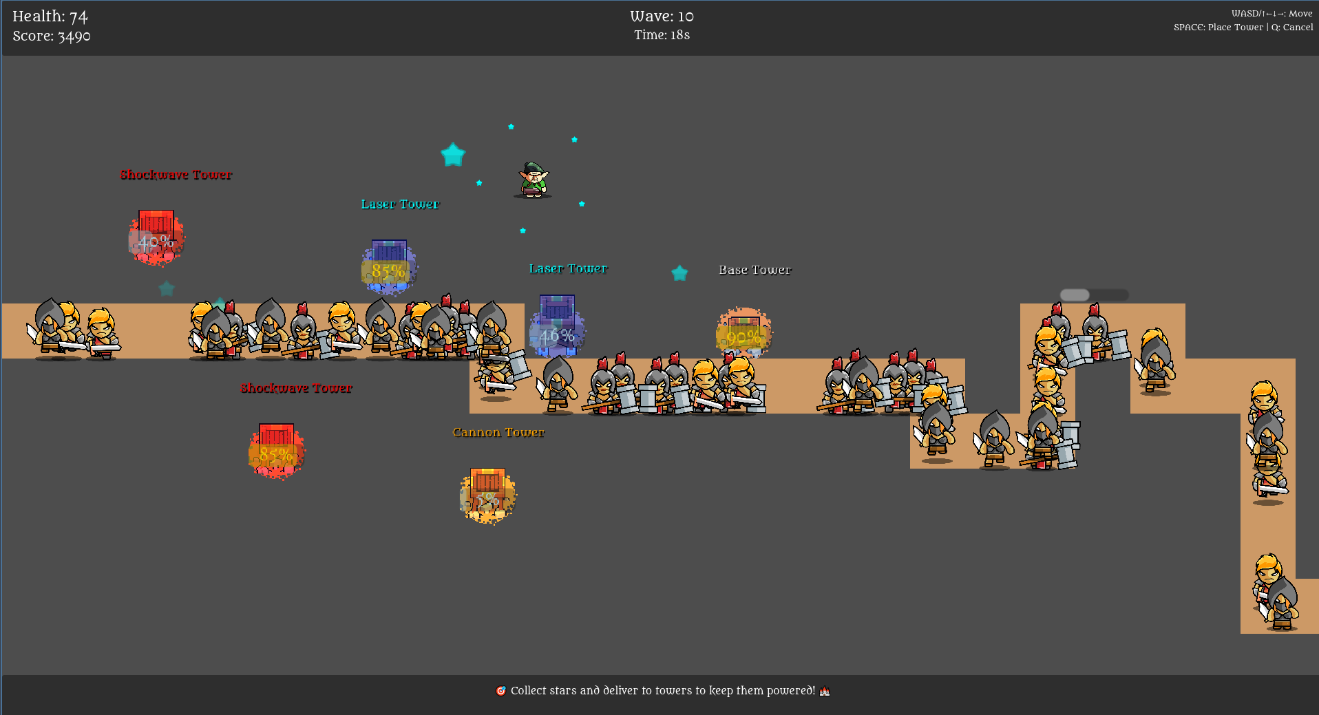 - Place towers, bring them stars, see how they devastate incoming enemies
